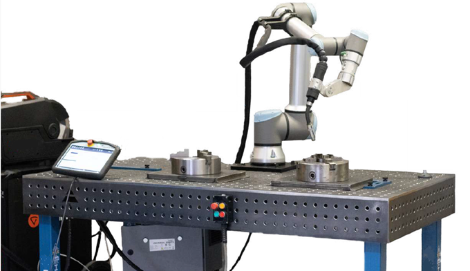 Da la oportunidad de tener un proceso de soldadura automático. Permite la conectividad entre el controlador del COBOT con una fuente de soldadura GMAW o GTAW mediante control remoto, señales digitales I/O o con cualquier protocolo de comunicación.